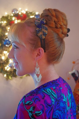 I got to use my new hairband today as an accent to a high braided bun. I just love all my new hair clips and headbands~ they are such a fun way to dress up your hair! Since it's Christmas time~ some hair pictures in front of my Christmas tree :-)